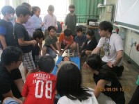 赤十字の方に応急救護の一つとして、三角巾を使った救護を教えていただきました。実...