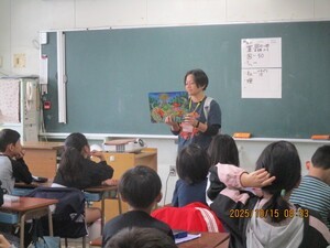 今日も読み聞かせをしてくださいました。写真は3,4,5年生の教室です。(1年生は写真を撮りそびれました・・・)