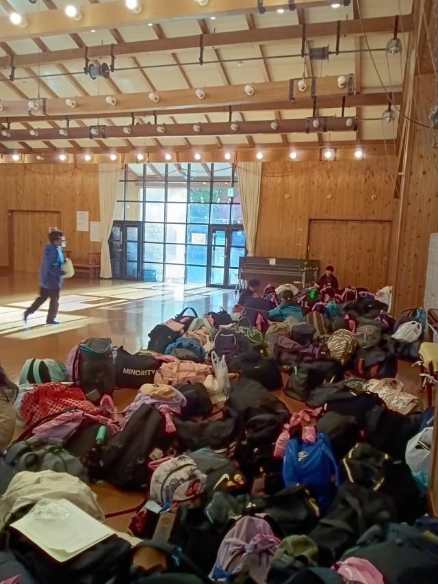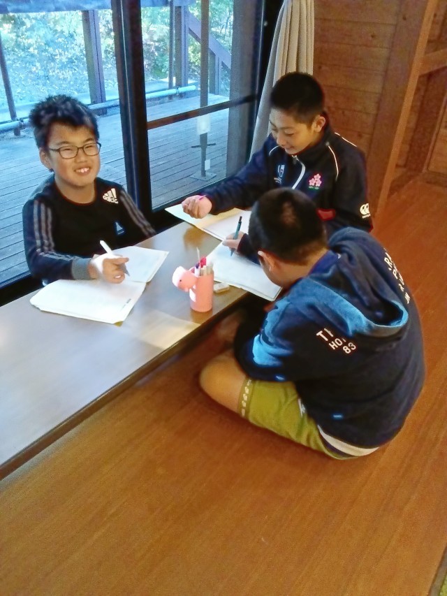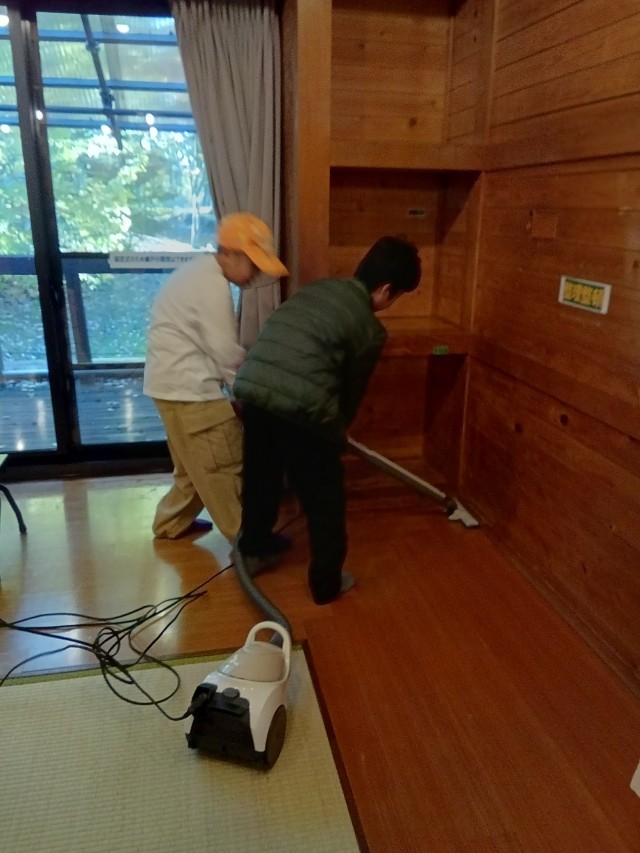 荷物をホールに運び部屋の清掃をしたり、しおりに記録を書いたりしています。
