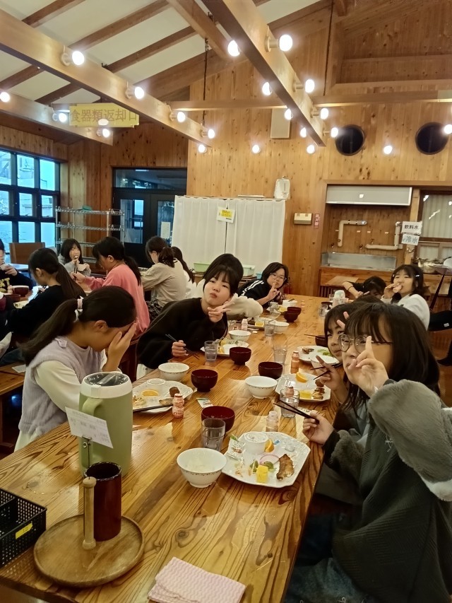 宿での最後の食事、美味しくいただきました。食事の片付けも昨日よりもスムーズ、「なすことによって学ぶ」ですね。