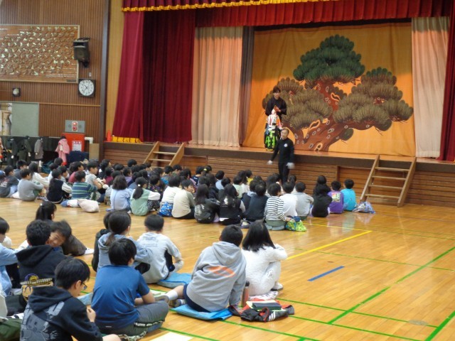 昨日は「八王子市版 笑顔と学びの体験活動プロジェクト」の取組で、4年生が散田小学校に行き、国の重要無形民俗文化財に指定されている「八王子車人形」について、実演を見学したり、稽古体験をしたりしながら学びました。