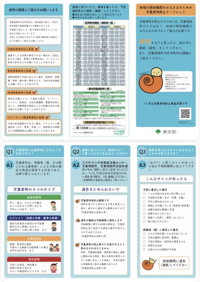 「児童虐待の可能性」を感じた時点で、学校や地域住民などは、子供家庭支援センターや児童相談所に「通告をする義務」があります。(児童虐待防止法第6条)