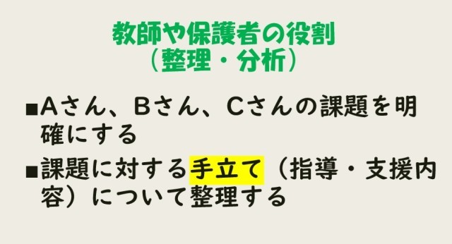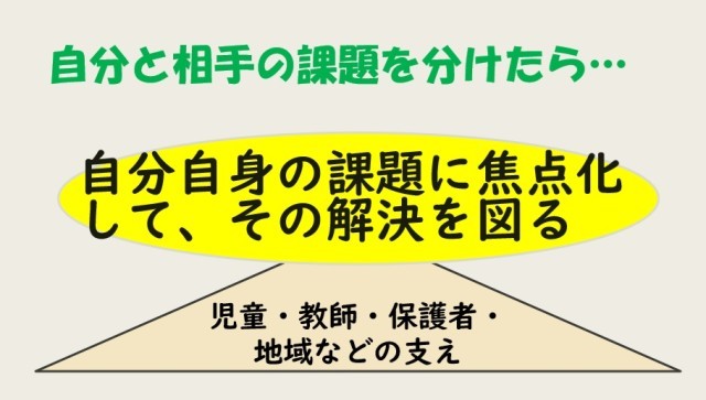 ★添付写真の中でも、課題の分離に基づいた児童への指導、支援のアプローチ、考え方について触れています。