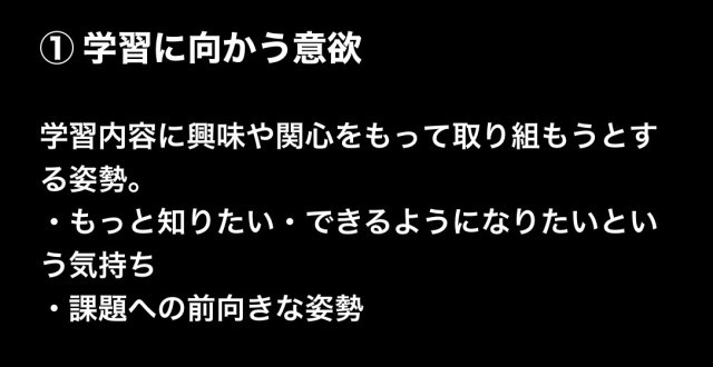 【校長回答】学習用端末のドリルに取り組む量が少ないことをもって評価が下がることはありません。自身が十分に学習内容を理解していることを自己理解した上でテストに取り組み、それが点数で証明されていれば問題ありません。写真にあるような観点と合わせて総合的に評価してまいります。[写真の内容参照]