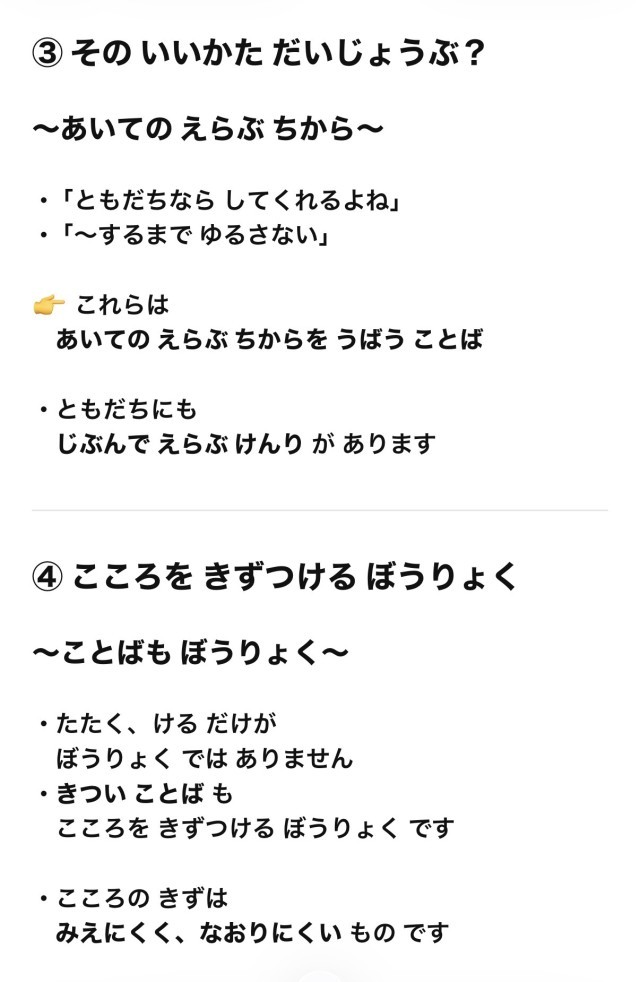 ○1月20日(火)言葉も含めた「暴力」は、その場にいる人をも傷つける(傷つけているのは直接の相手だけではない)
