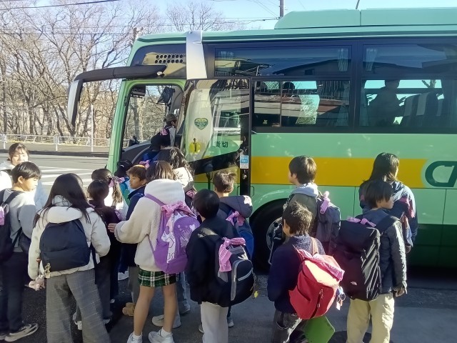 2月3日(火)東京都を体感しよう3(4年生 ほぼリアルタイム配信) 公開日 2026/02/03 更新日 2026/02/03 今日の出来事 8:50校門の前で学習内容の確認をしました。今日の登校予定の子もみんなそろって出発ですバスに乗るときには、多くの子が運転手さんに「よろしくお願いします」と言っていました。相手意識が高い!うれしいです。