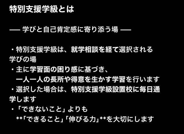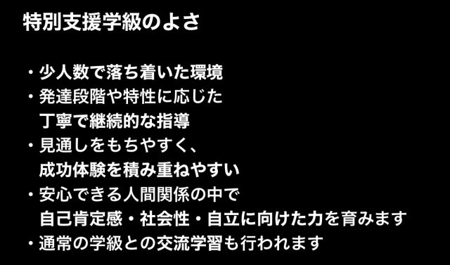 特別支援学級は、就学相談を経て、学習面の困り感に基づき、自己肯定感や個々の長所を高めることに注力した学びを行う場所です。