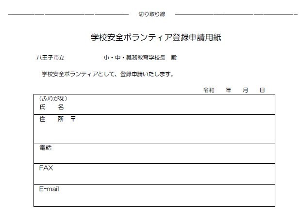 以下のPDFを印刷いただき、必要事項をご記入の上学校までご提出いただければ、緑色ベストをお渡しいたします。