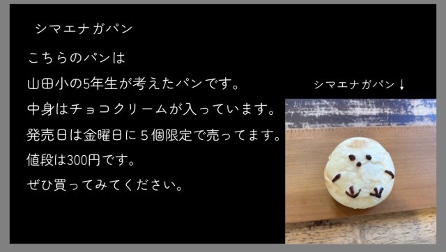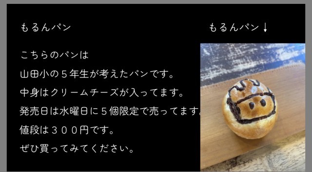 限定商品のために売り切れていることもあるかと思いますが、パン屋さんに行っていただきながら、5年生の取組を話題にしていただくことで、めじろ台の街が明るく賑やかになったら嬉しいことです。