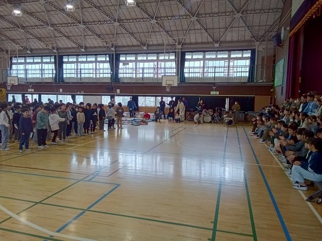 ただ今、体育館では6年生を送る会がおこなわれています。
