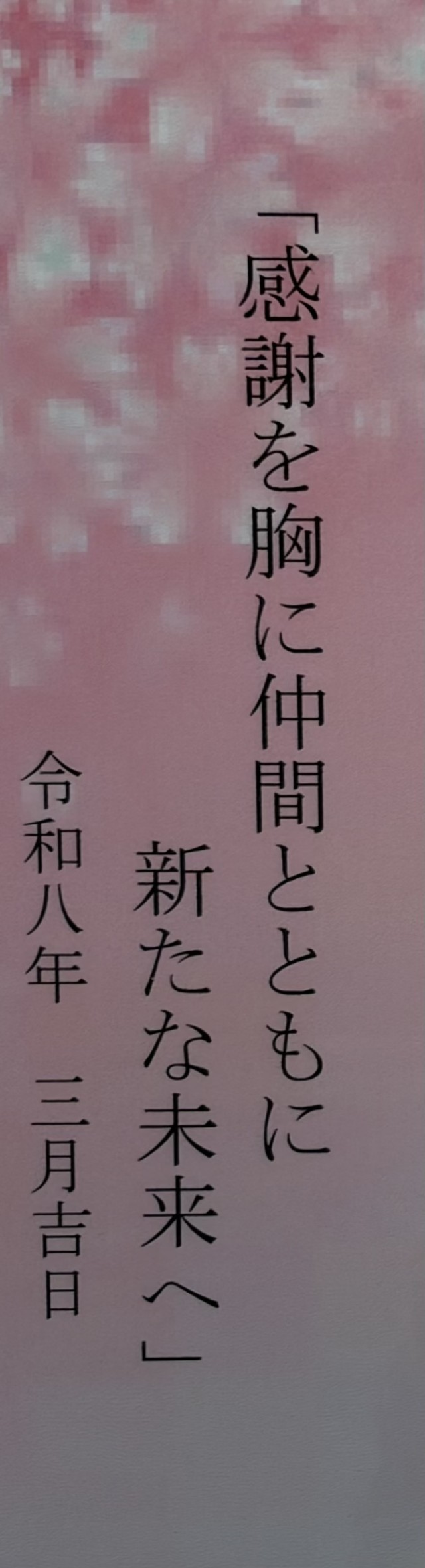 中学校のご卒業、おめでとうございます。