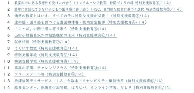 山田小学校としての特別支援教育については、八王子市としての取組を含め、これまで学校HPにてお伝えしてきておりますので、その内容のリンクについて、一般的な支援の順に一部並べ替えをしてお知らせいたします。
