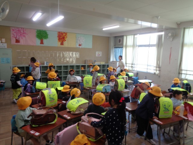 他の保育園、幼稚園、認定こども円などからの新しい仲間、担任の先生との出会いとなる学校での一日が終わろうとしています
