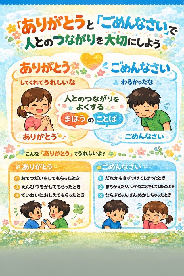 ありがとうやごめんなさいのほかのあいさつも、人を幸せにする魔法の言葉ですね。