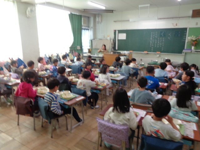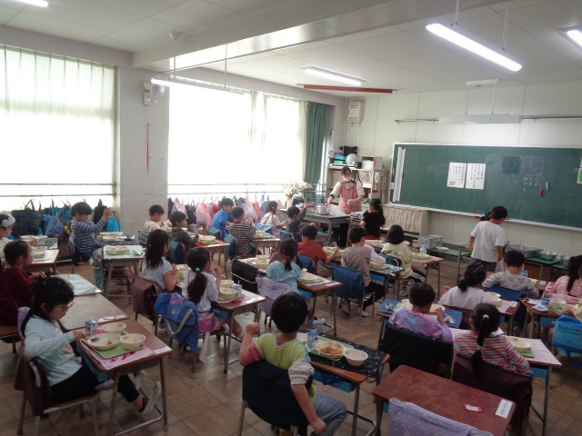 ランチョンマットをひいて、近くのこと少しお話などもしながら(会食は給食の目的の1つです!)、おいしそうに、楽しそうに食べていました。