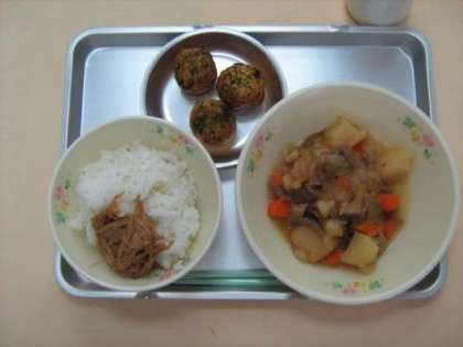 (がんもどきを焼いて、タコ焼きのように青のりとソースをかけました。子供たちにも大人気でした。)