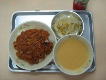 10月18日の給食 公開日 2012/10/18 更新日 2012/10/18 今日の出来事 チリコンカンライス 秋色のポタージュ コールスロー 牛乳 (秋色のポタージュは、人参を茹でてすりつぶし、秋の紅葉を表しています。食事は、目で楽しむ部分が多いので、作る楽しみも、食べる楽しみも倍増しますね。)