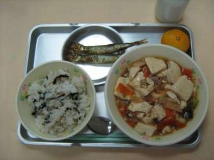 10月23日の給食 公開日 2012/10/23 更新日 2012/10/23 今日の出来事 わかめご飯 とうふの旨煮 ししゃものカレー焼き 塩みかん 牛乳 (ししゃもはタンパク質やカルシュウムに加えてビタミンAやB2も豊富に含まれ、粘膜を強くしたり、免疫機能を調整する効果があります。動脈硬化やさまざまな生活習慣病の予防にも効果があります。カルシュウムが不足がちな現代人にはもってこいですね。)