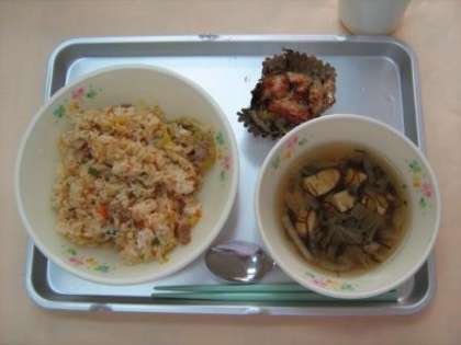 10月24日の給食 公開日 2012/10/24 更新日 2012/10/24 今日の出来事 キムチチャーハン 海鮮シューマイ もずくスープ 牛乳 (キムチチャーハンは、6年1組さんがリクエストしてくれました。久しぶりのキムチチャーハンですね。)