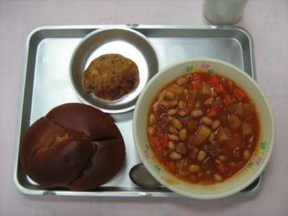 11月6日の給食 公開日 2012/11/06 更新日 2012/11/06 今日の出来事 黒糖パン ツナの山河焼き ポークビーンズ 牛乳 (魚や香味野菜をたたいて混ぜ、みそなどで味付けしたものをなめろうと言いますが、そのなめろうを焼いたものを山河焼きと言います。給食では、食べやすいように、ツナや肉も入れています。栄養バランスがよいですから、魚の苦手な人も、ぜひ食べて欲しいです。)