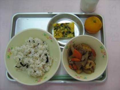 (千草焼とは、たくさんの野菜を入れた卵焼です。学校では、チーズも入れました。たくさんの野菜のだしが出て、栄養も豊富で美味しいです。家庭でも、余った野菜炒めなどを卵焼に入れると、一味違った卵焼になりますね。)