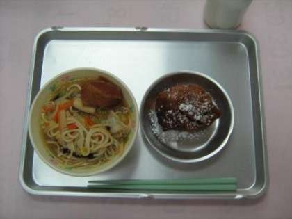 11月9日の給食 公開日 2012/11/09 更新日 2012/11/09 今日の出来事 五目汁そば 豚の角煮 沖縄ドーナッツ 牛乳 (沖縄ドーナッツは、沖縄の言葉で、サーターアンダーギーと言います。「サーター」は砂糖、「アンダーギー」は揚げ物を意味します。その名の通り、砂糖を多めに使用した球状の揚げドーナッツです。黒砂糖が入って、香りもよく、ミネラルもあります。)