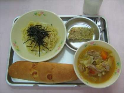 11月14日の給食 公開日 2012/11/14 更新日 2012/11/14 今日の出来事 チーズフランス 鯵の香草パン粉焼き タラコスパゲッティー(2年1組リクエスト) ボルシチ 牛乳 (鯵には、イノシン酸という旨味成分が多く、噛めば噛むほどおいしいです。タラコスパゲッティーは、2年1組さんがリクエストしてくれました。)