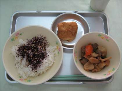 12月13日の給食 公開日 2012/12/13 更新日 2012/12/13 今日の出来事 ゆかりご飯 油揚げの春巻き 野菜の旨煮 牛乳 (油揚げの春巻きは、春巻きの皮を油揚げにしました。中華料理から一転、和風な料理になります。味付けも、和風に仕上げてあります。)
