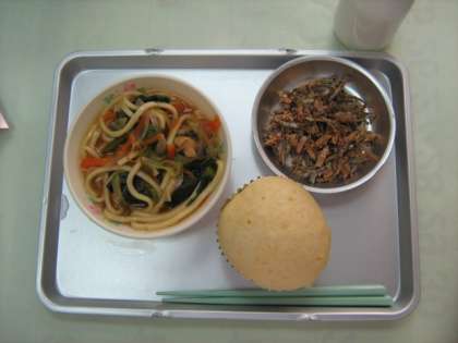 12月18日の給食 公開日 2012/12/18 更新日 2012/12/18 今日の出来事 カレーうどん 肉蒸しパン ごまめナッツ 牛乳 (肉蒸しパンは、蒸しパンの生地に、肉や野菜など、おいしいだしが効いた具材を入れ、蒸しました。手作りの味が、おいしいです。)