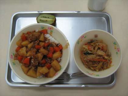 1月23日の給食 公開日 2013/01/23 更新日 2013/01/23 今日の出来事 カレーライス 春雨サラダ キウイ 牛乳 (春雨は、大豆からとったでんぷんを糸状に固めて作ります。日本製の春雨は、じゃがいものでんぷんで作られます。料理により、大豆からできた春雨と、じゃがいもからできた春雨を使い分けます。今日の春雨は、大豆からできた春雨を使っています。)