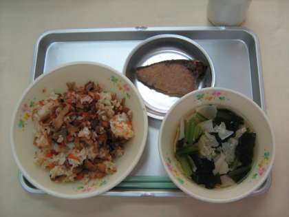 1月28日の給食 公開日 2013/01/28 更新日 2013/01/28 今日の出来事 かて飯 ゆばのすまし汁 ぶりの照り焼き 牛乳 (学校給食週間の3日目です。今日は、給食の内容についてお話します。学校給食では、児童生徒1人1回あたりの栄養量やエネルギー量が決められています。それに合わせて、栄養士が献立を考えます。地域の郷土料理や、地場産物を取り入れ、地域に合った料理を取り入れています。)