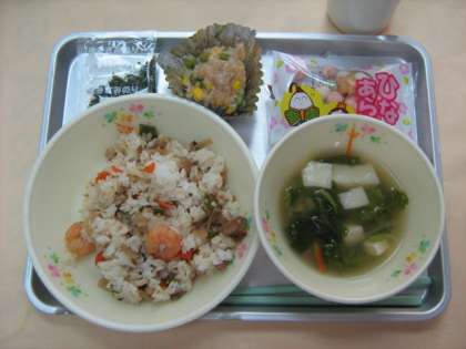 (3月3日は、桃の節句と言われ、女の子の健やかな成長と幸せを願い、お祝いする日です。ちらしずしは、お祓いのために野外で、いろいろな食材を彩りよく、すめしに混ぜて食べたのが始まりといわれ、各地の産物が使われます。各家庭で、行事のたのしみかたは色々あると思いますが、行事や伝統を大切に受け継いで行って欲しいと思います。)
