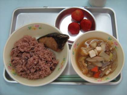 3月19日の給食 公開日 2013/03/19 更新日 2013/03/19 今日の出来事 赤飯 鰤の西京焼き けんちん汁 いちご 牛乳 (今日は、6年生にとっては、山田小学校最後の給食です。卒業と進級を祝って、今日の献立は、赤飯です。6年生には、卒業の記念に、給食のレシピ集を贈らせていただきます。中学校では、お弁当のお手伝いから始まると思いますが、やがては、自分ひとりでお弁当が作られるようになって欲しいと思います。)