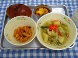15日のこんだては、バターロール・ペンネアラビアータ・野菜のスープ煮・クリームプリン・牛乳でした。