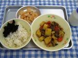 23日のこんだては、五穀ごはん・のりの佃煮梅風味・鶏肉とじゃがいもの南蛮煮・白いんげん豆のグラッセ・牛乳です。