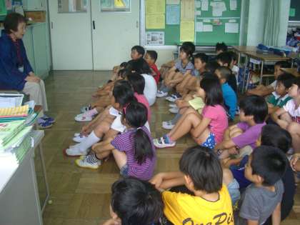どの学年も、月に何度か図書ボランティアの方々に読み聞かせをしていただいています。
