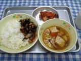 19日のこんだては、ごはん・魚のみそ焼き・大豆の磯煮・吉野汁・牛乳です。