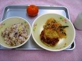 24日のこんだては、五穀ごはん・つくね焼・白滝のピリカラ炒め・くだもの(冷凍みかん)・牛乳でした。