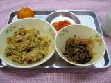 7月10日の給食 公開日 2013/07/10 更新日 2013/07/10 今日の出来事 10日の給食は、チャーハン・えびのチリソース煮・春雨サラダ・くだもの(冷凍みかん)・牛乳です。 給食のチャーハンは、家庭と違い、フライパンは使えません。大きな釜で、調理員さんが二人がかりで、素早くごはんを下から上にかき混ぜながら炒めます。家庭の調理方法からは、想像できませんね。