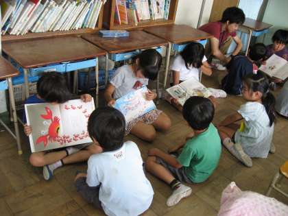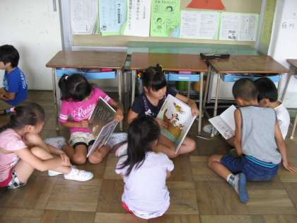 そのあと、ひとり1冊選んで練習しておいた日本の昔話を、1年生に読み聞かせました。