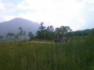 ネイチャーガイドの方々に解説してもらいながらの戦場ヶ原ハイキング。その後、菖蒲ヶ浜でお弁当を食べたあとは、昨日から予定を変更した華厳の滝見学。霧が晴れていてよかったですね。