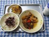 11日のこんだては、ゆかりごはん、揚げじゃがの煮物・擬製豆腐・牛乳です。