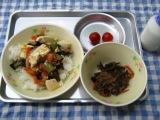 25日のこんだては、豆腐のうま煮丼・茎わかめのきんぴら・ミニトマト・牛乳です。