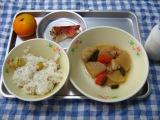 1日のこんだては、くりごはん・赤魚のみそ焼き・鶏肉と里芋の煮物・くだもの(みかん)・牛乳です。