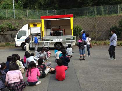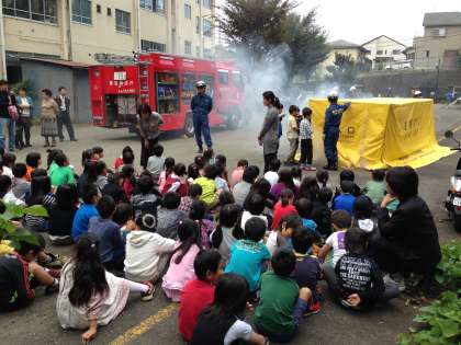 11月2日(土)は、防災体験教室が行われました。起震車体験や119番通報体験、消火器放射体験、煙体験、三角巾の使い方、AEDの使い方、ロープワークなど、防災に関する様々なことを学習することができました。