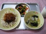 12月5日の給食 公開日 2013/12/05 更新日 2013/12/05 今日の出来事 5日のこんだては、和風ハンバーグ丼・小松菜とコーンのソテー・みそ汁・牛乳です。 和風ハンバーグ丼のごはんは、「五穀ごはん」です。ごこくとは、5種類の穀物という意味で、今日は、米、もち米、麦、きび、あわが入っています。もちの香り、麦、きびの食感がおいしいですね。しっかりかんで食べてください。