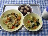10日のこんだては、中華風炊き込みご飯・みそ汁・白玉あずき・牛乳です。