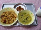 10日のこんだては、タコチャーハン・鶏のバンバンジー焼き・中華風たまごスープ・牛乳です。