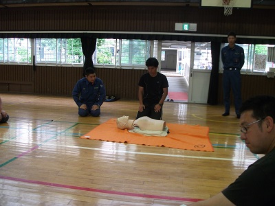 5月27日(火)放課後の時間を使って、富士森消防署の方に来ていただいて、水泳指導中に事故が起きた場合の応急救護の講習会を開いていただきました。どうか今年も、事故なく水泳指導が終わりますように・・・