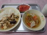 15日のこんだては、マーボー茄子丼・冬瓜スープ・くだもの(すいか)・牛乳です。